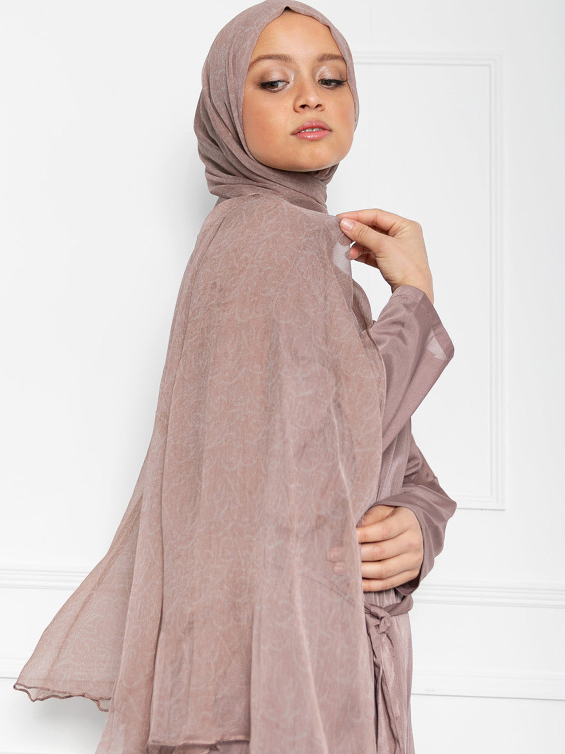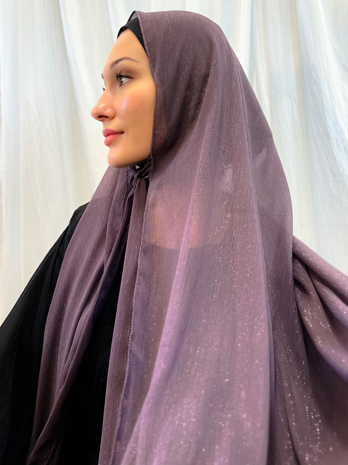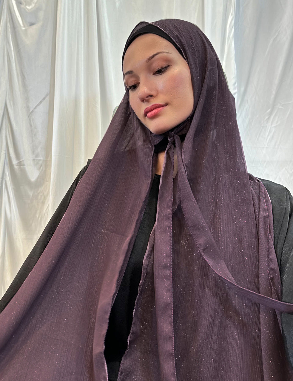 Mauve Tie Up Shimmer Hijab