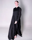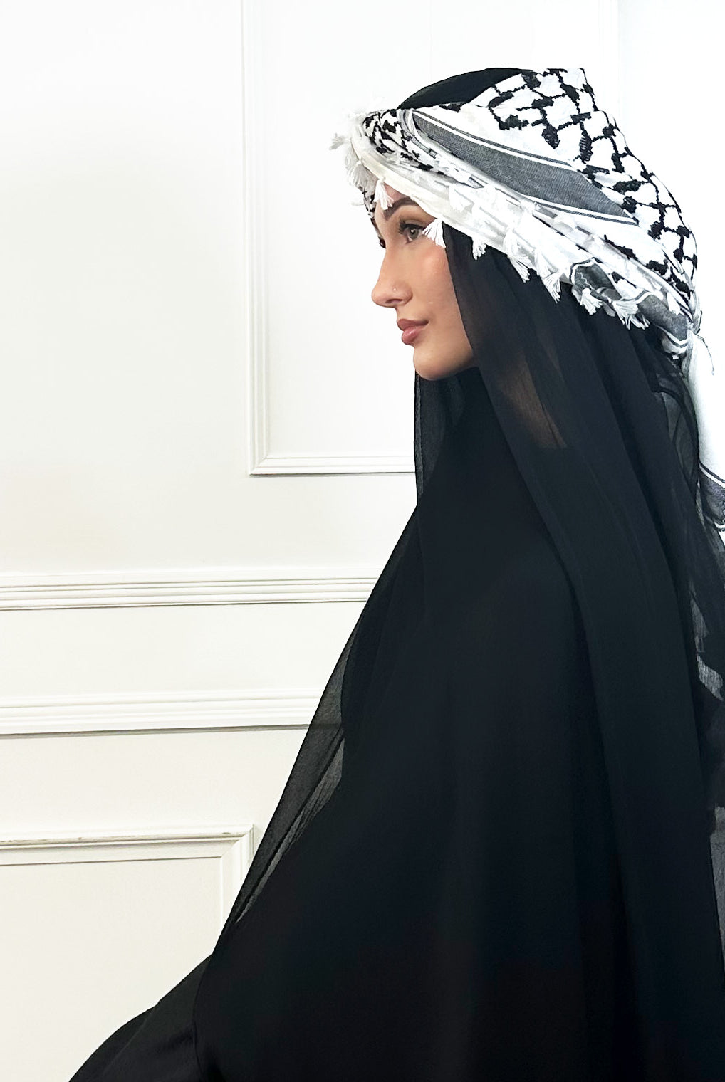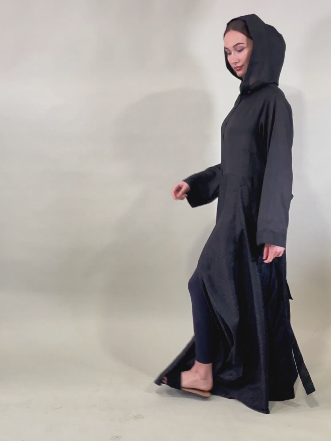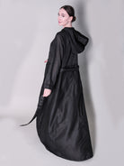 Elevate your wardrobe with this Black Khafiyah Jacket, seamlessly transitioning into Autumn/Winter with timeless elegance. The collection is inspired by meaningful dressing, evoking a sophisticated mood. Hand-woven from organic cotton, this jacket exudes luxury and artistry, making it the perfect throw-on piece.