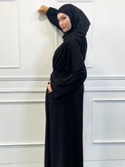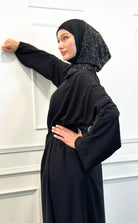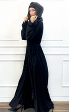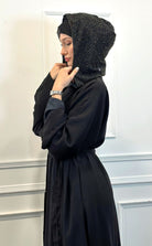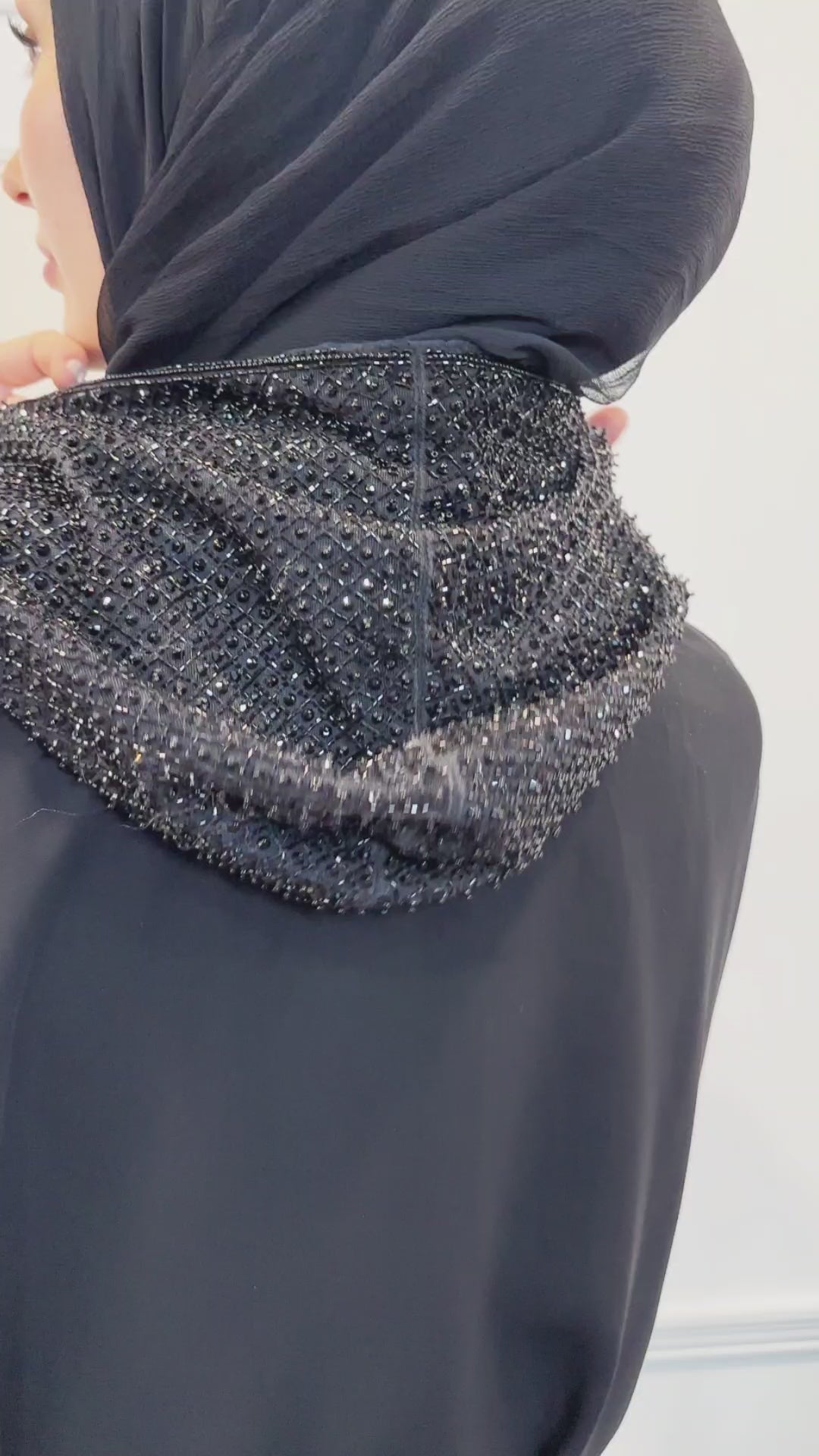 Whether you're out running errands or heading out for the evening, this beaded hood brings instant glam to your look. Our Black Handcrafted Hooded Jacket is the ultimate stylish sidekick for every trendsetter. Crafted from sleek black fabric with dazzling net beading on the hood—which you can pop off thanks to handy front press buttons—this jacket adds an effortlessly cool, city-chic vibe. Throw it on over anything for a fresh, fancy twist, and use the belt to get the perfect fit without any fuss.