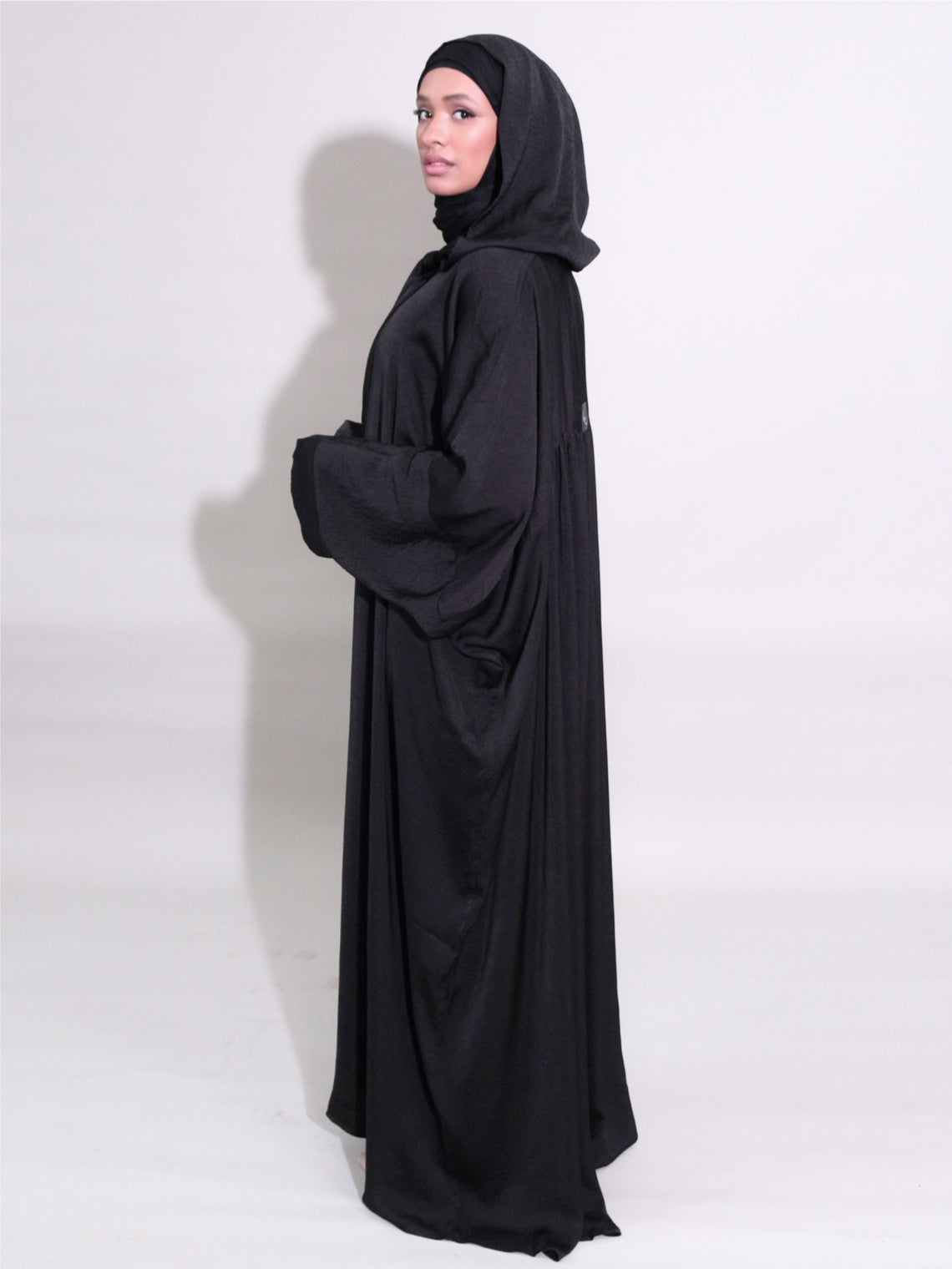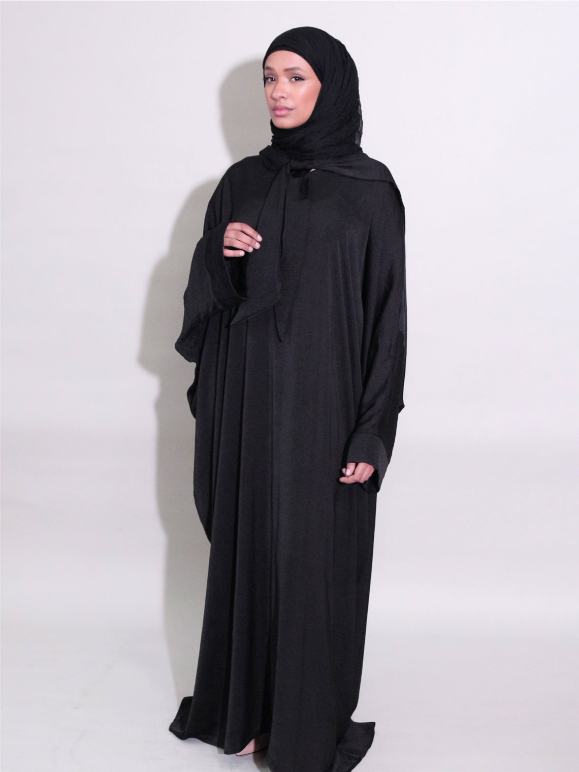 This Hooded Abaya is the perfect balance of structure and ease is an everyday premium essential that combines practicality, silk quality and style. This versatile piece features a hood attached. The stretchy fabric allows for comfortable and easy movement, while the modestly on trend.