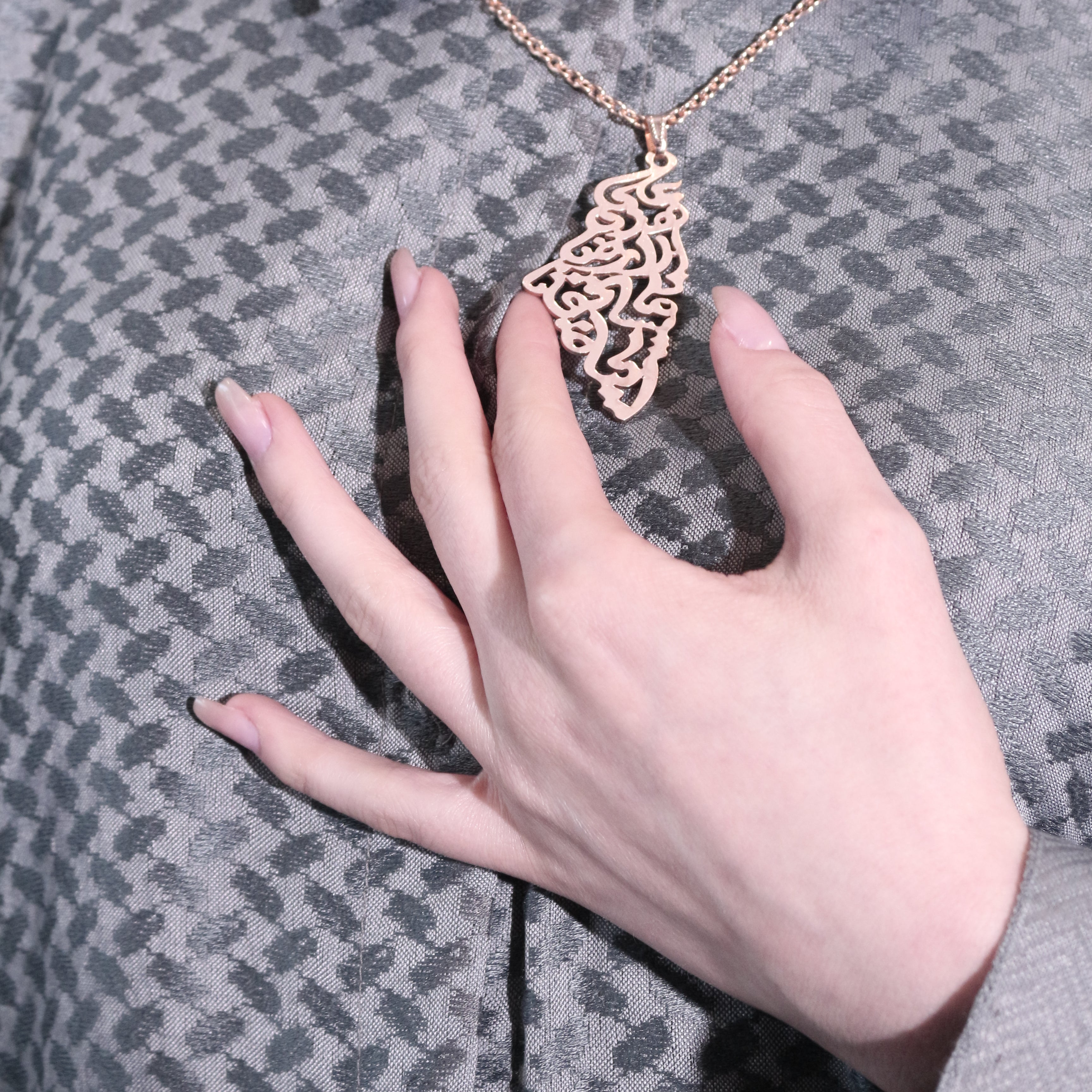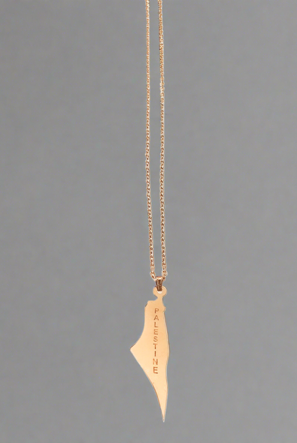 Presenting our Palestine Silhouette Necklace, a poignant adornment honouring the intricate culture and storied past of Palestine. Whether you cherish a personal tie to Palestine or are captivated by its cultural richness, our necklace is a chic accessory that infuses sophistication into your attire .