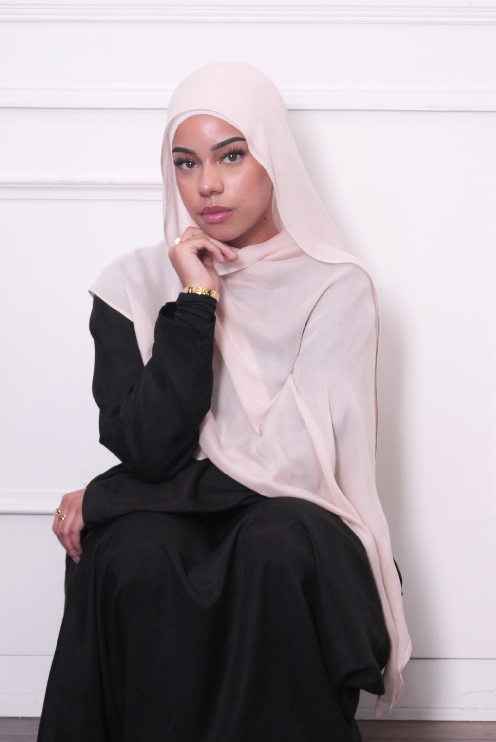 Complete the look with the matching modal or chiffon whisper pink hijab.