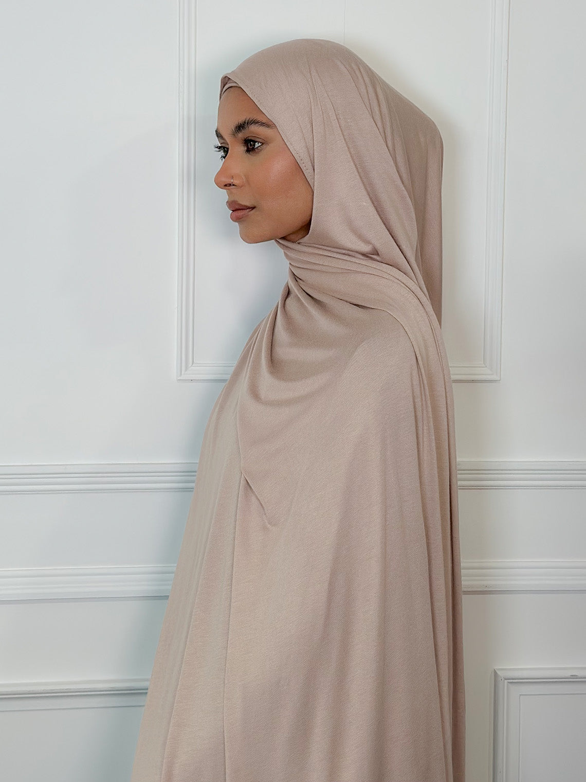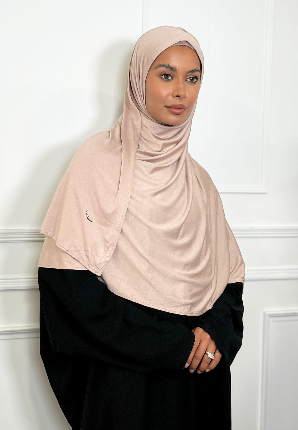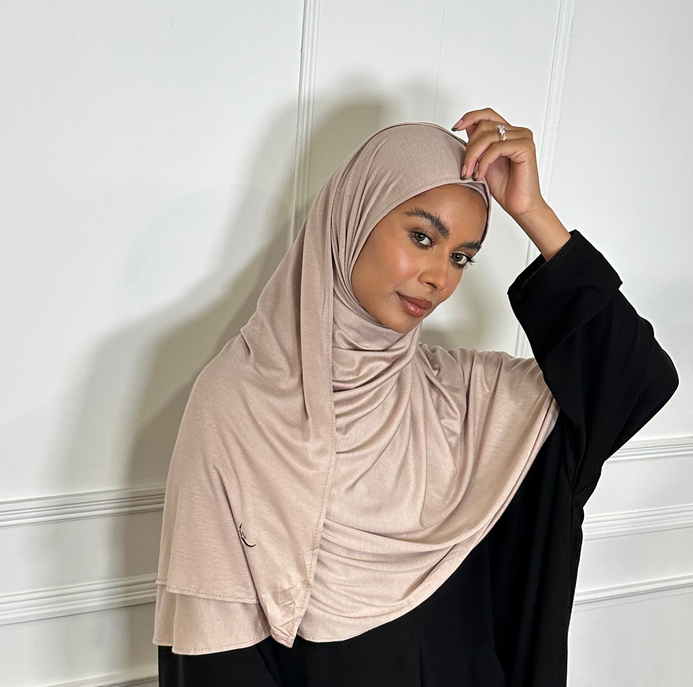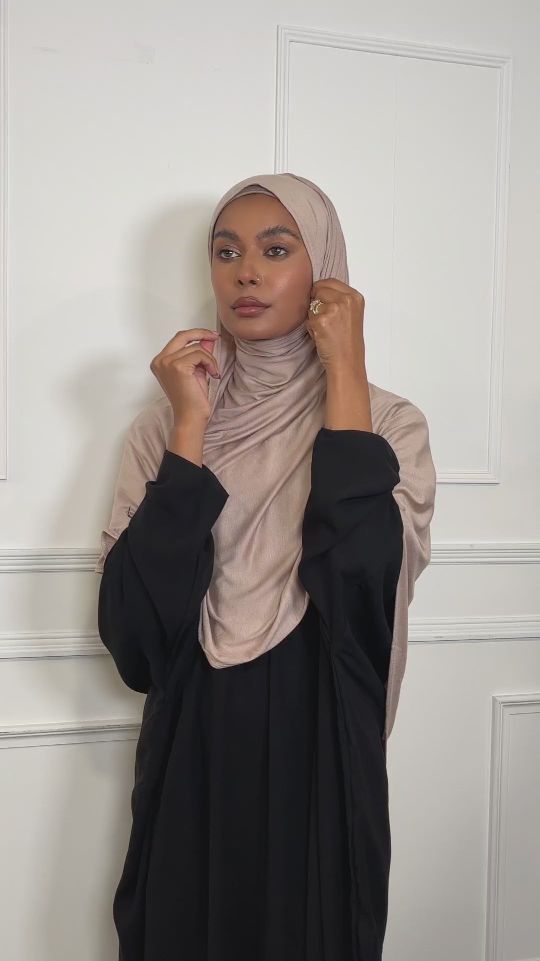 The instant jersey hijab is a great choice for beginners, reverts, and anyone who wants a quick and easy way to wear a hijab. Leave shorter end at the back as it allows the front to be a draped giving you a effortless look while still providing coverage.