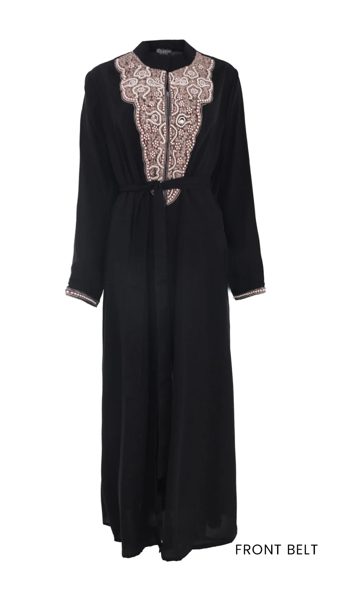 Our abayas are generally one size, measuring approximately 44 inches across the chest, though depending on the style and cut, this may vary by 1 to 1.5 inches
