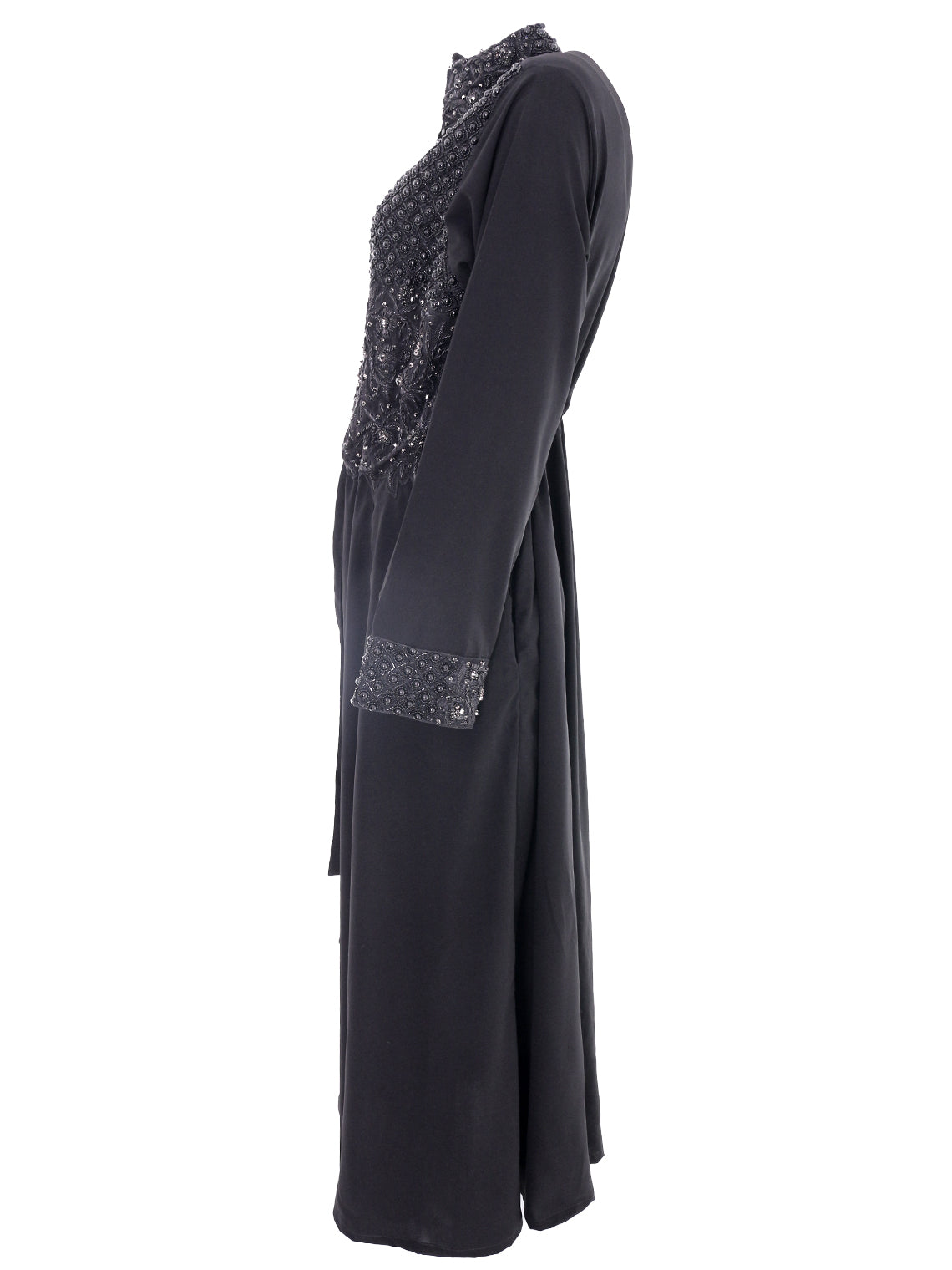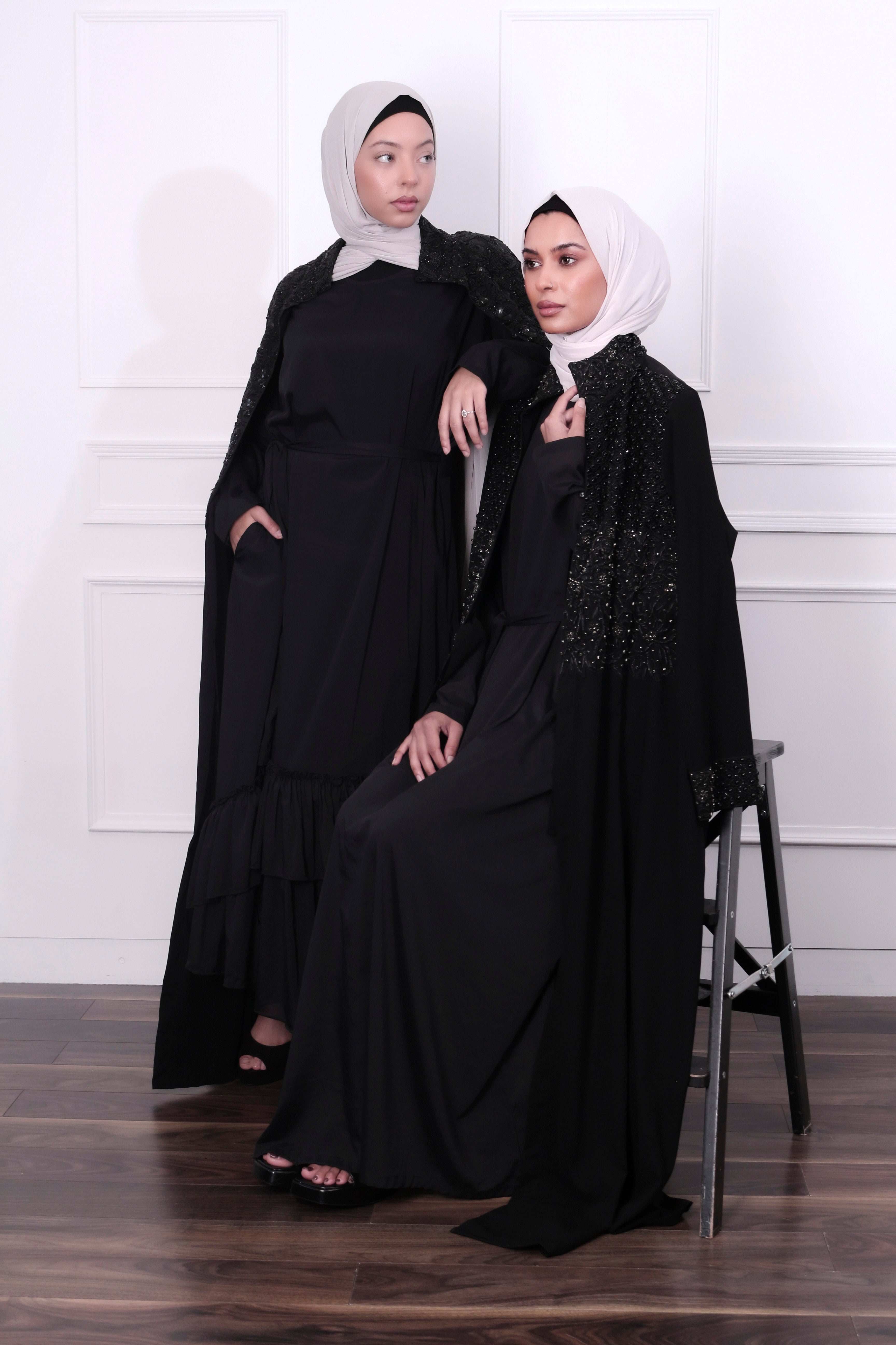 Our abayas are generally one size, measuring approximately 44 inches across the chest, though depending on the style and cut, this may vary by 1 to 1.5 inches