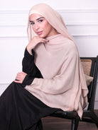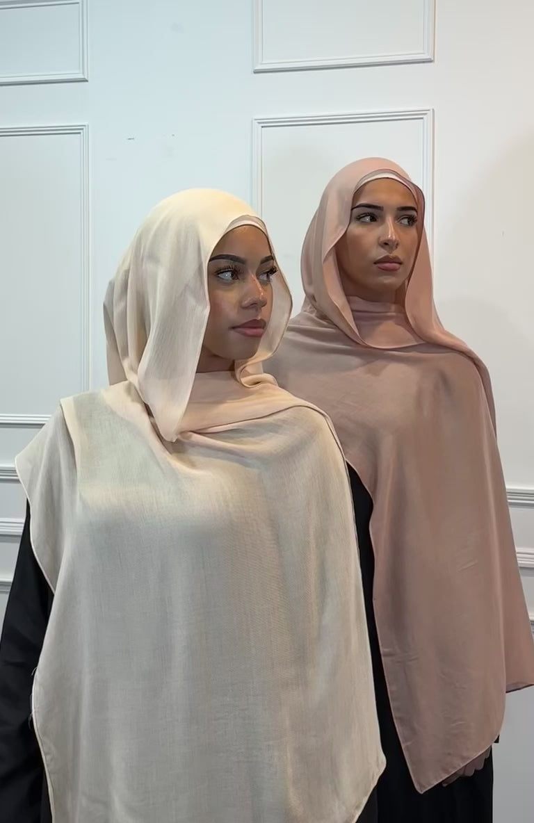 This hijab features a light peach shade that enhances any outfit with subtle elegance. Crafted from luxuriously soft and breathable modal fabric, it offers superior comfort and style. Its elegant drape is perfect for everyday wear or more formal events. Finished with precise edge stitching, each scarf boasts a polished and durable look that blends sophistication with lasting quality.