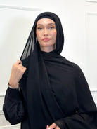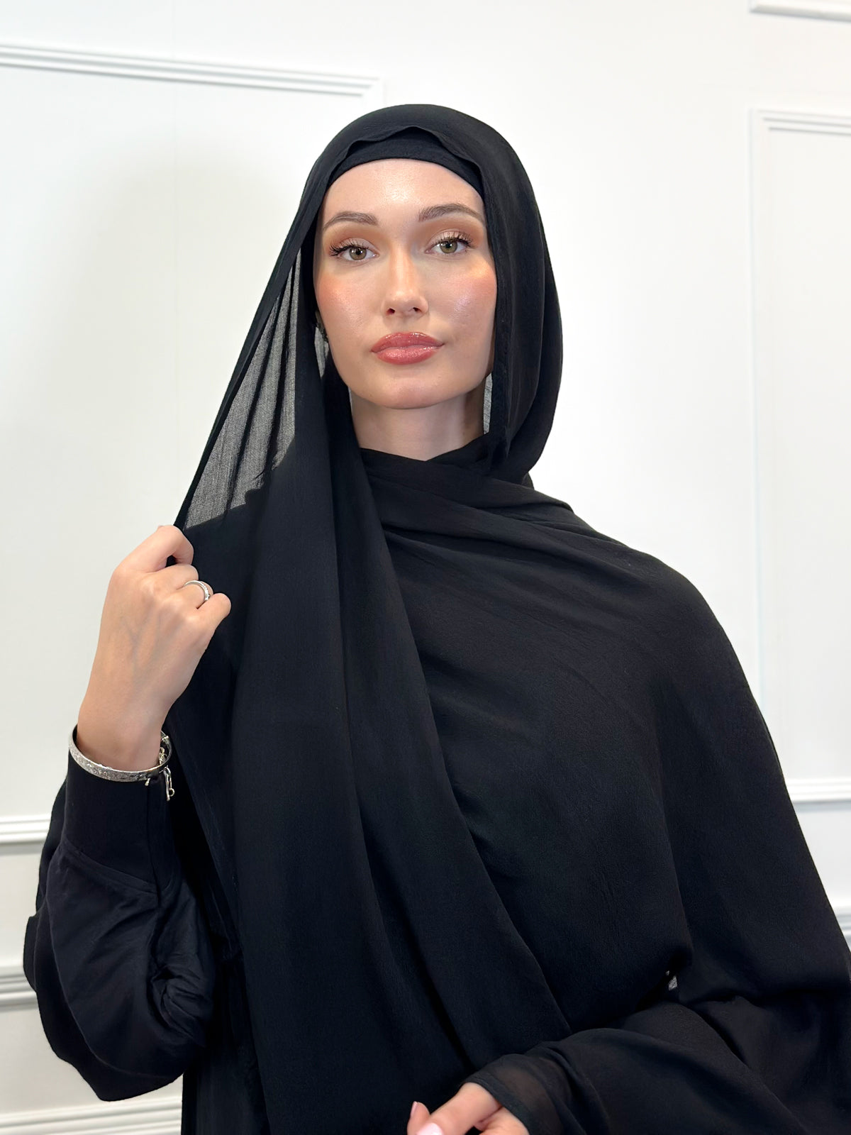 Elevate your collection with our Premium Modal Scarf in classic black. Crafted from ultra-soft, breathable modal fabric, this lightweight hijab offers exceptional comfort and a graceful drape. Its delicate texture and impeccable edge stitching make it an elegant accessory suitable for any setting.