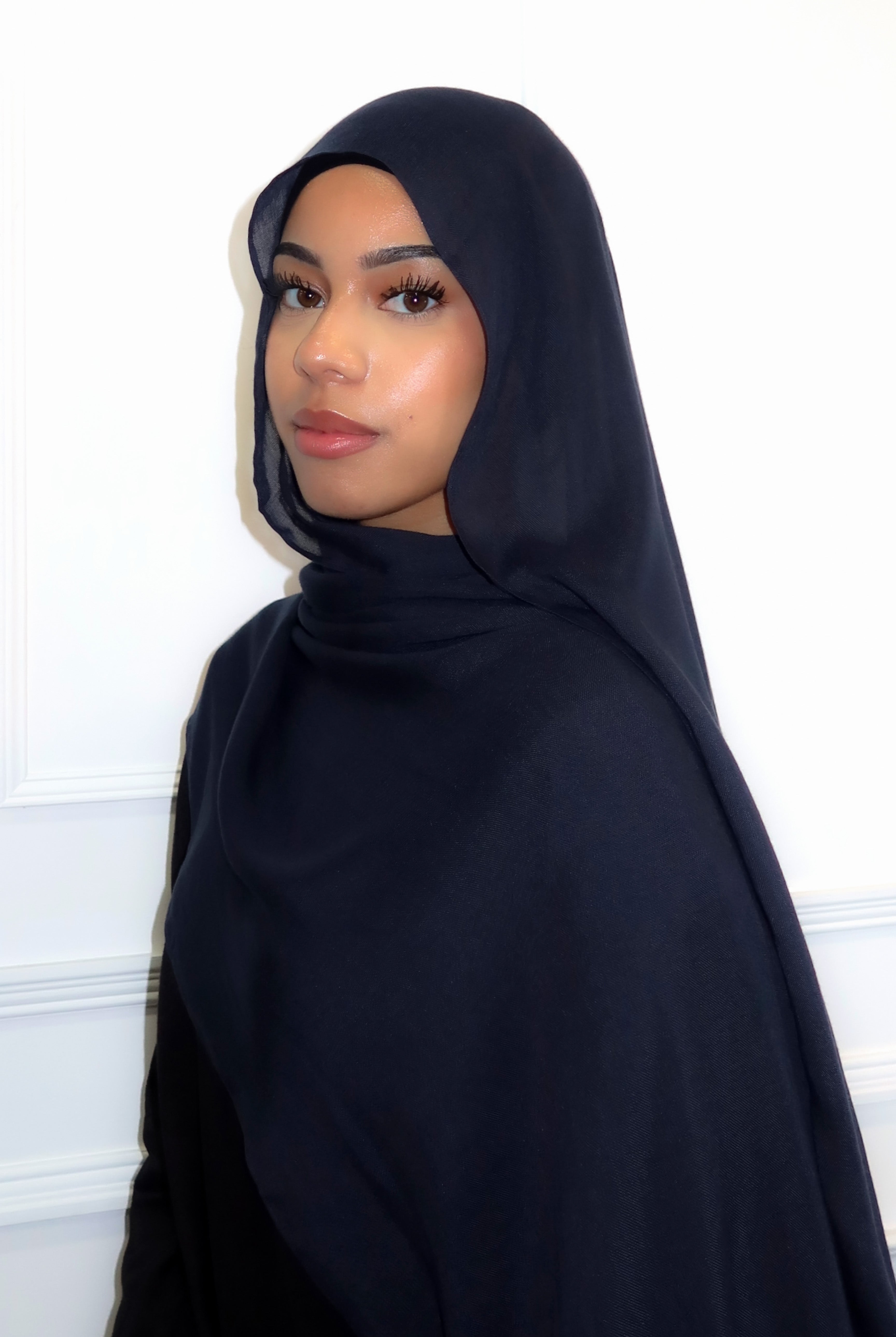 Elevate your collection with our Premium Modal Scarf in midnight. Crafted from ultra-soft, breathable modal fabric, this lightweight hijab offers exceptional comfort and a graceful drape. Its delicate texture and impeccable edge stitching make it an elegant accessory suitable for any setting.