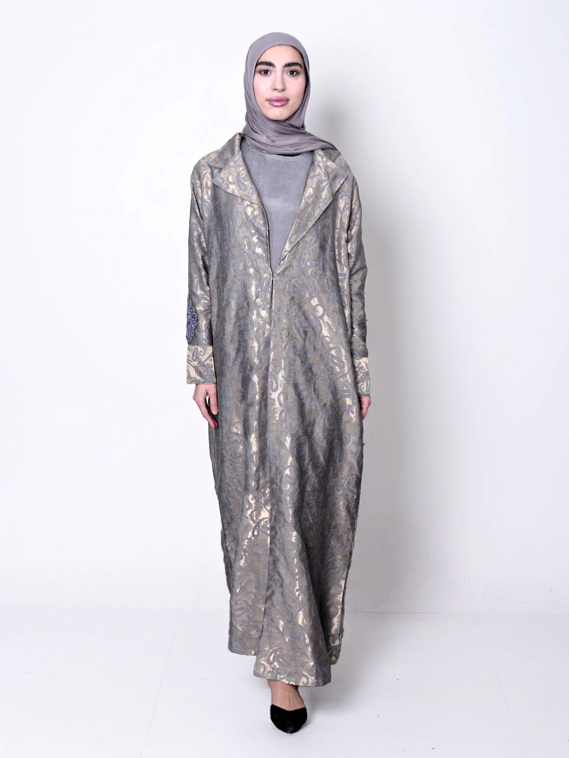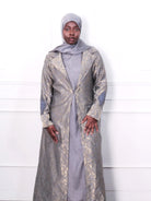 Grey Metallic paisley Jacket With Slip Set