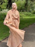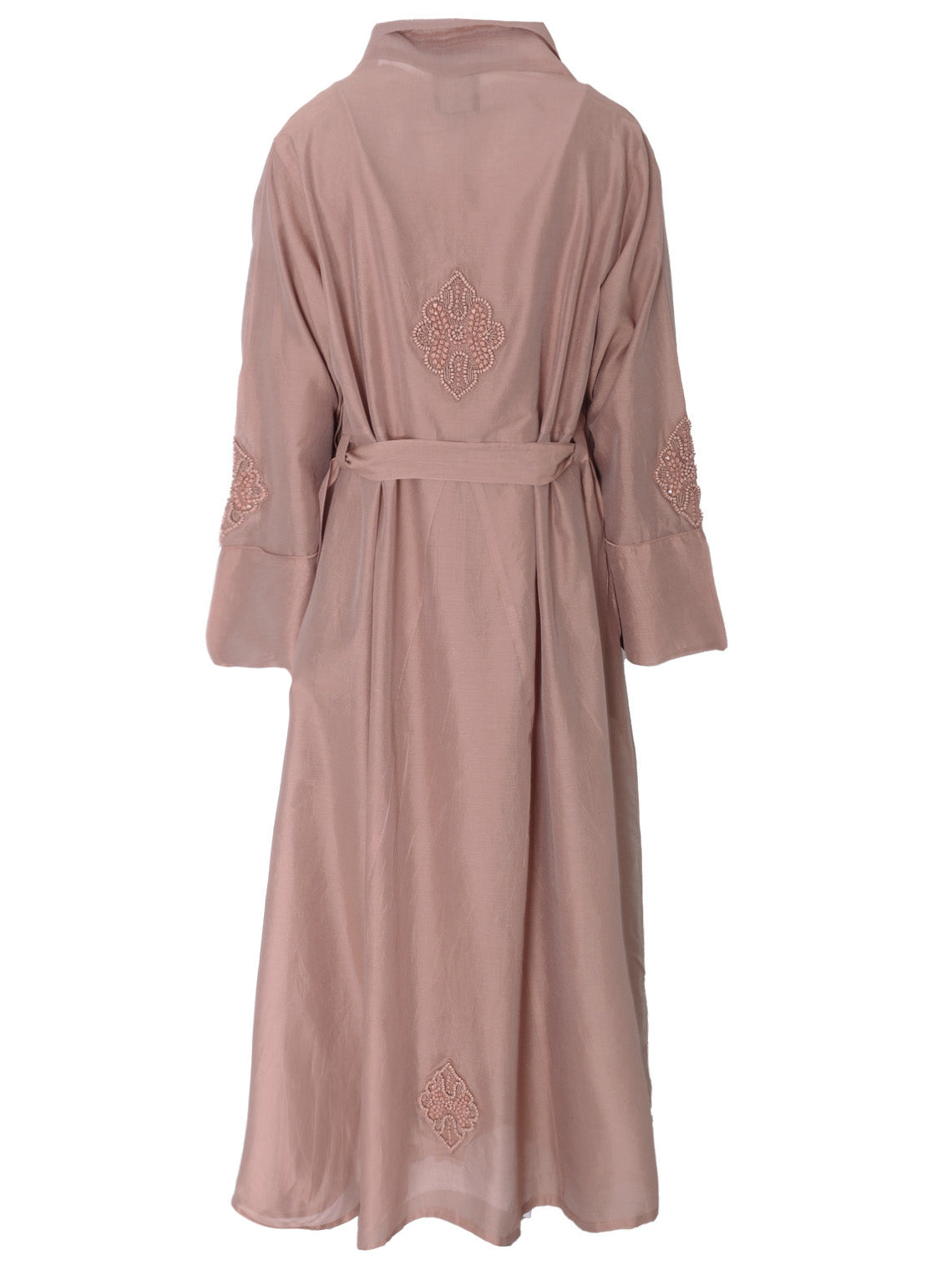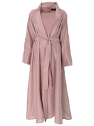 Our Cinnamon Silk Persia Jacket is a structured fabric, with a little stiffness that creates an elegant silhouette. With a belt to cinch in at the waist and voluminous kimono sleeves. It has our signature Persia motif in tonal colour to give it a vintage-style elegance.