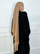 Our tie back jersey hijab is made from a stretchy, soft jersey fabric. It is designed to be easy to wear, with no need for pins or complicated wrapping techniques. The hijab has a cap which you tie up at the back, and you simply flip the hijab back and style to your preference.