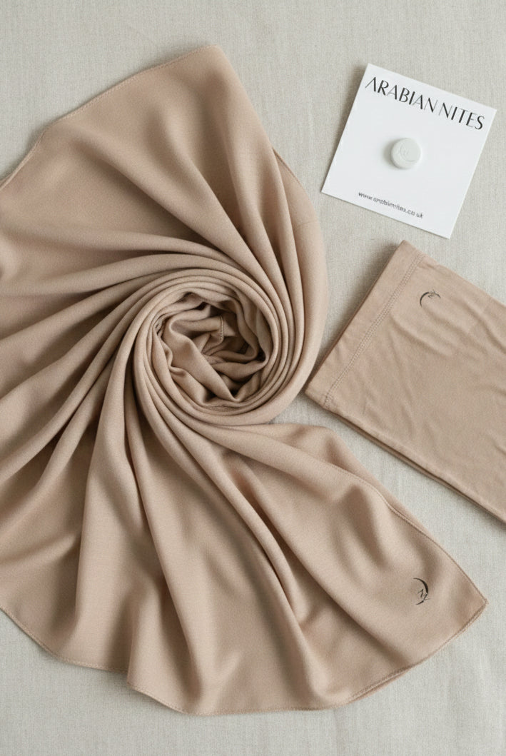 Feel comfort with style. Simply designed in natural colours, a perfect basic to introduce in your cap collection. It's designed in a soft lightweight jersey with a slight stretchiness to it. A great comfort to wear under your hijab with ease. They work perfectly well with our chiffon and Modal hijabs.