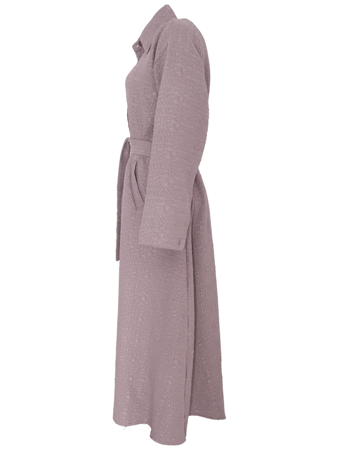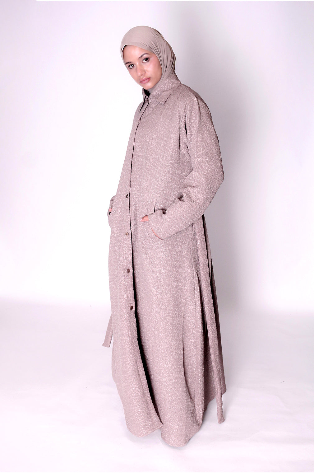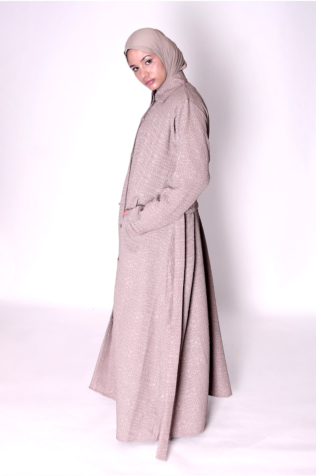 This beige longline jacket captures the essence of refined minimalism for the thoughtfully curated closet. Woven from indulgently soft jacquard with subtle elasticity, it adapts to your frame whilst preserving an impeccably composed silhouette. The understated textured surface introduces quiet luxury, whilst considered design elements—a neat button fastening, practical side pockets, and a coordinating belt—work in concert to sculpt a flattering line. Conceived for those transitional moments between seasons, this jacket proves equally at home during casual afternoons or more polished occasions, delivering the kind of effortless refinement that transforms any look.