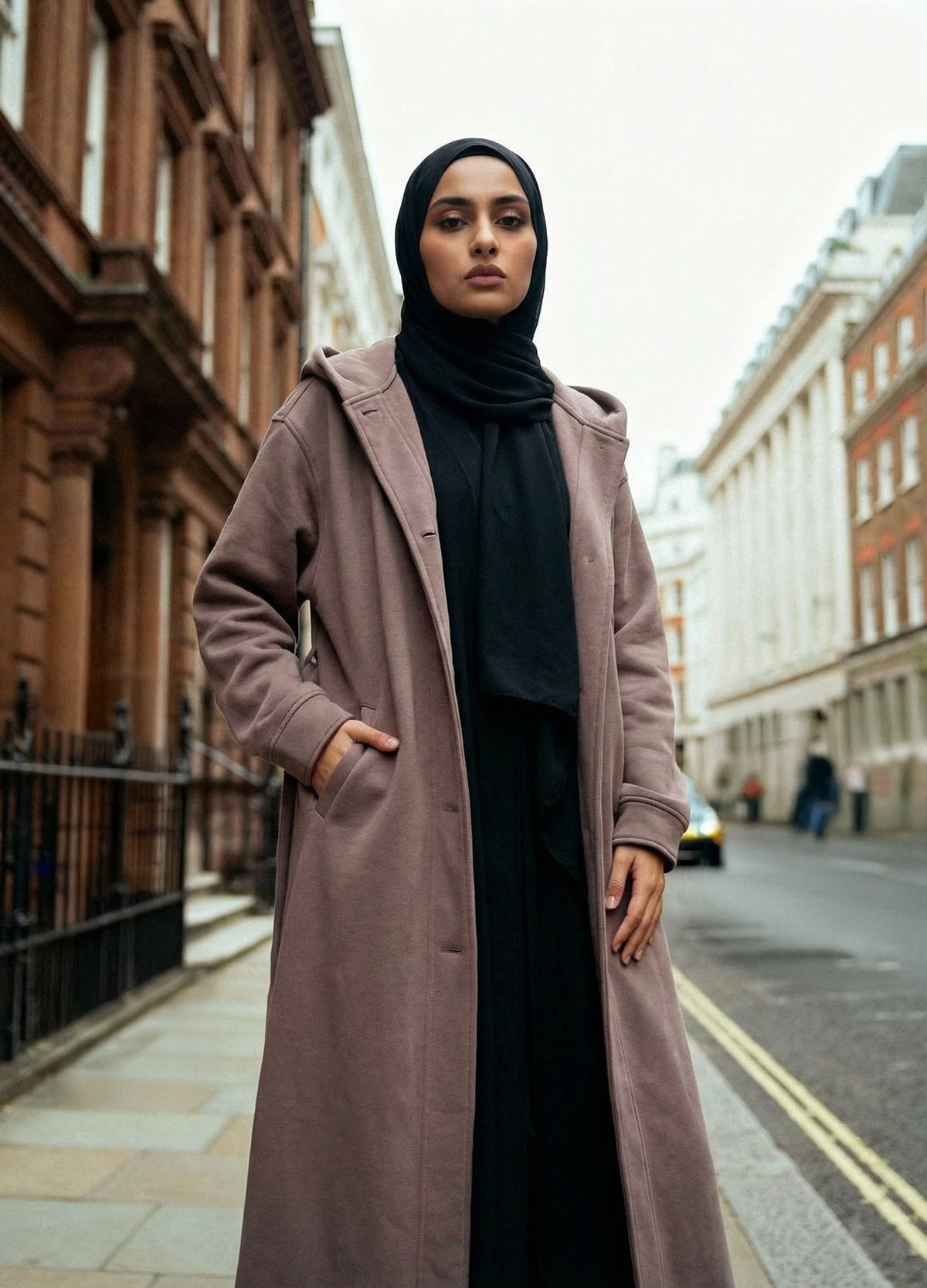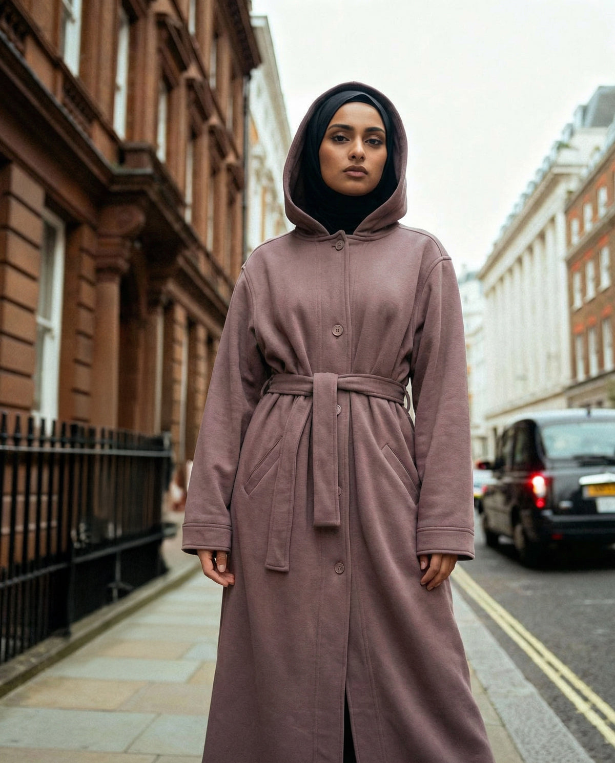 Our Winter Wool Hooded Longline Jacket is cut in an intentionally oversized, longline shape with a large hood for that cosy, cocooned feel. Wear it belted to define the waist and sharpen the look, or leave it loose for an effortless, slouchy drape that layers beautifully over knit dresses, abayas, and everyday basics.
