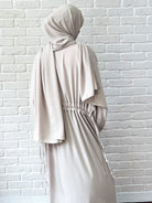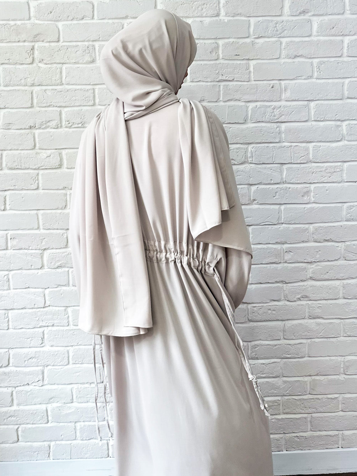 Discover the perfect blend of elegance and ease with the Dove Madina Everyday Kaftan. Crafted from smooth satin, it ensures freedom of movement and features an adjustable drawstring alongside a practical front zipper. Whether adorned with your finest jewellery or worn simply, this kaftan enhances your daily wardrobe with refined sophistication and comfort.