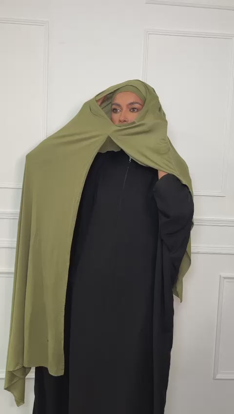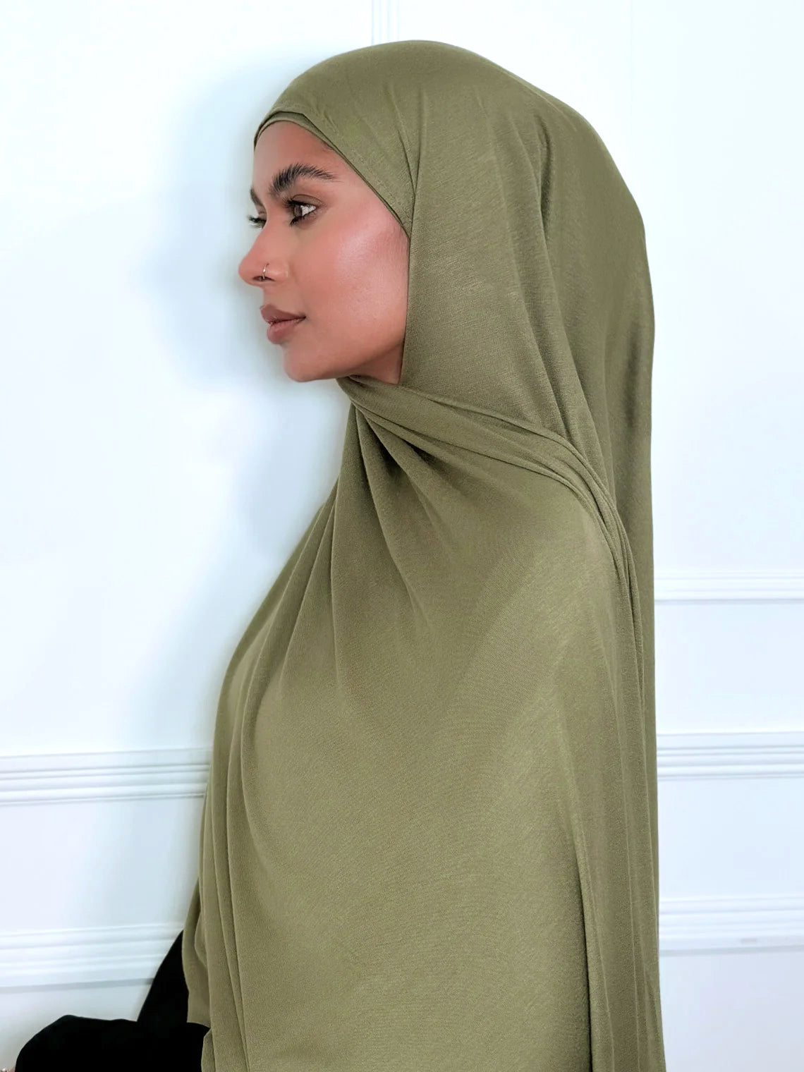 The instant jersey hijab is a great choice for beginners, reverts, and anyone who wants a quick and easy way to wear a hijab. Leave shorter end at the back as it allows the front to be a draped giving you a effortless look while still providing coverage.