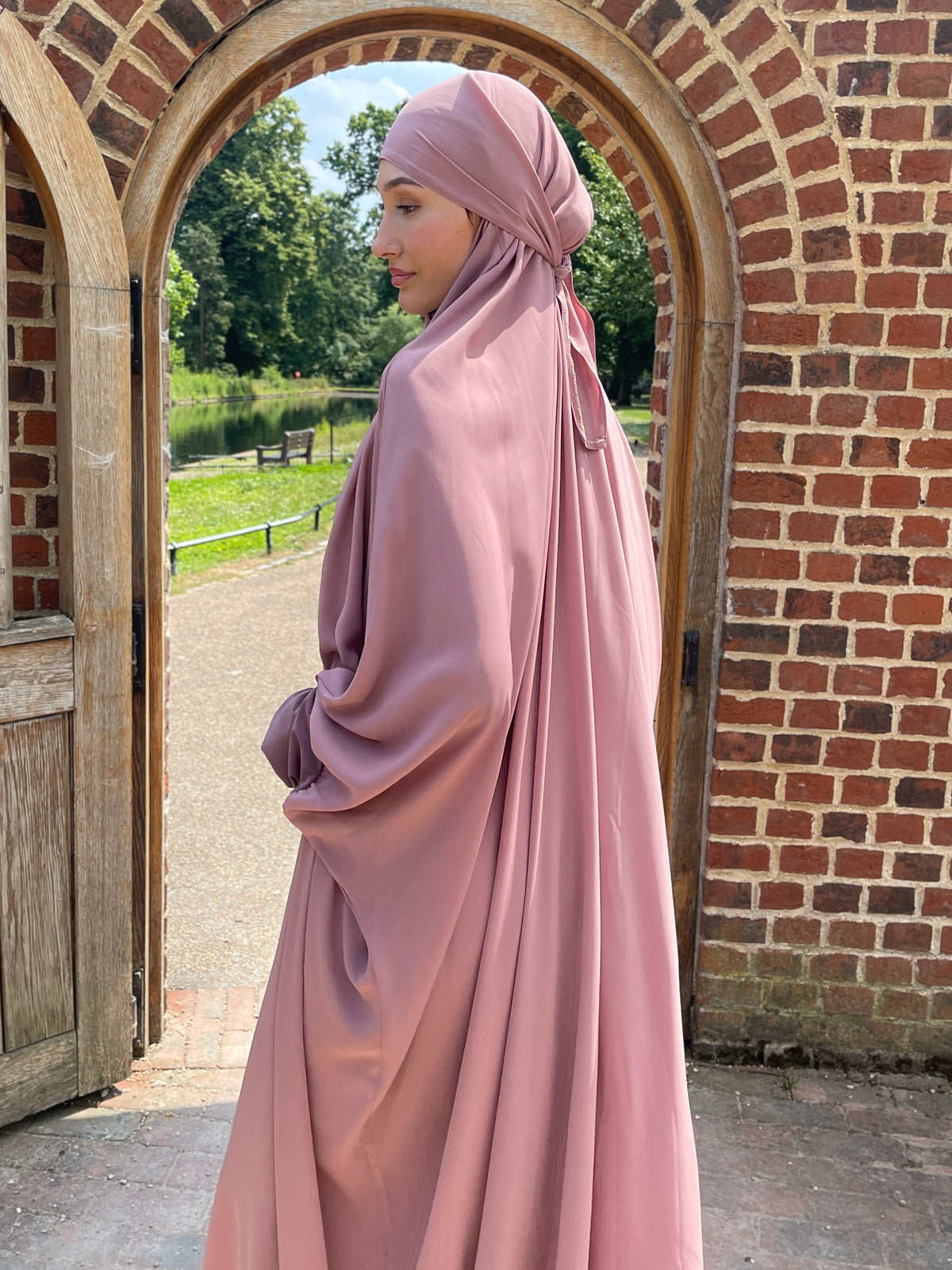 Indulge in the timeless appeal of this classic Pink Jilbab with Thumb Hole & Zip. Effortlessly stylish and versatile for everyday wear, it features convenient pockets on both sides and a front zip for expectant mothers or easy access. Perfect for daily wear or prayer time, this jilbab boasts Jersey sleeves, a concealed zip, slant pockets, and an attached headscarf designed to fit all sizes.