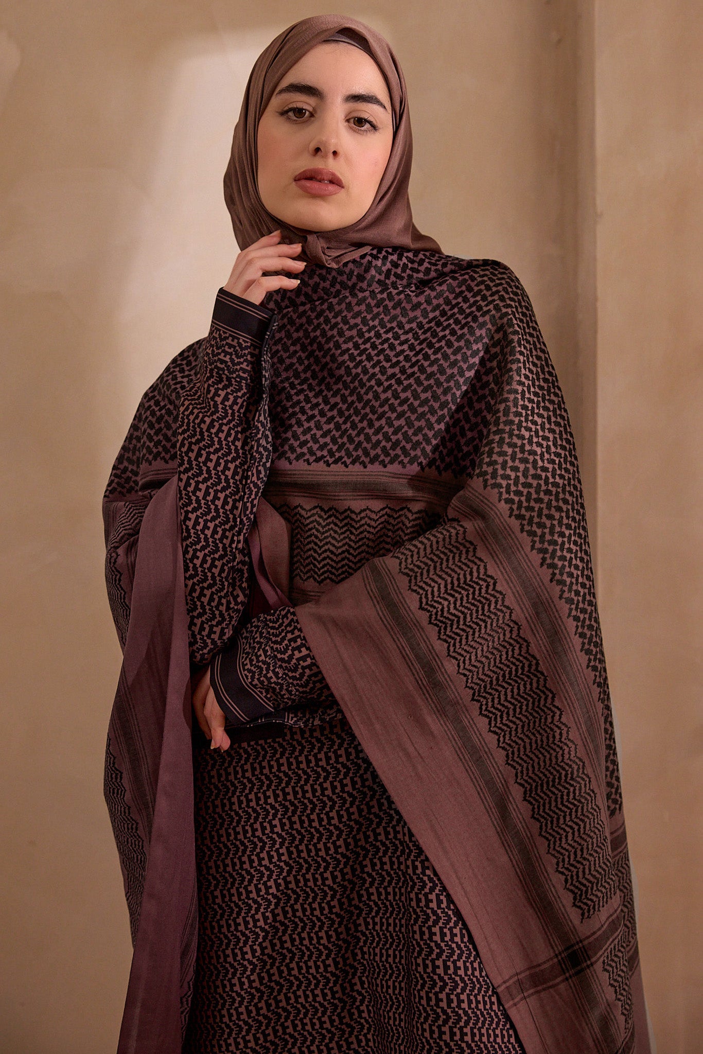 Lightweight yet structured, it can be styled as a shawl, draped over the shoulders, or wrapped as a statement layer. A versatile essential that carries meaning wherever you go.