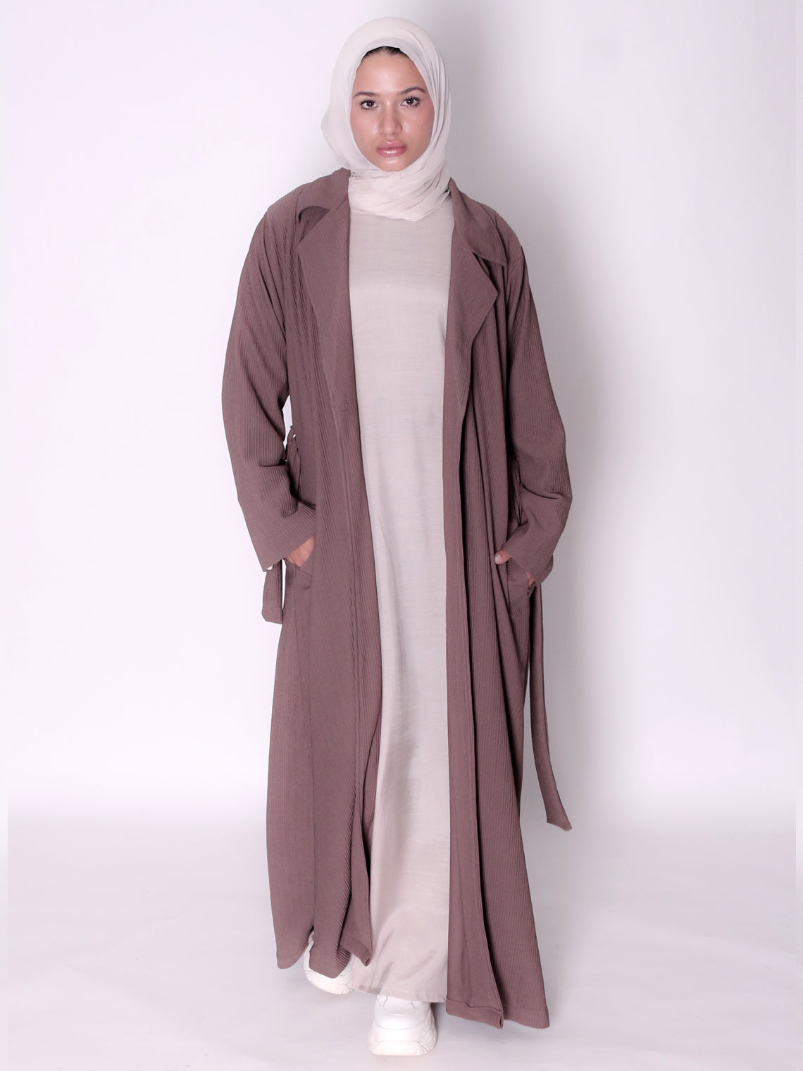Transform your styling options with this beautifully crafted latte jacket that delivers understated luxury without sacrificing comfort. Constructed from supple jersey cotton, its lengthened cut and textured ribbed detailing create an instantly elevated aesthetic. The strategically placed side pockets keep essentials within reach, while the adjustable belt allows you to define your silhouette exactly as you prefer. This is the jacket that bridges the gap between laid-back ease and refined elegance—perfect for those who refuse to compromise on either comfort or style.