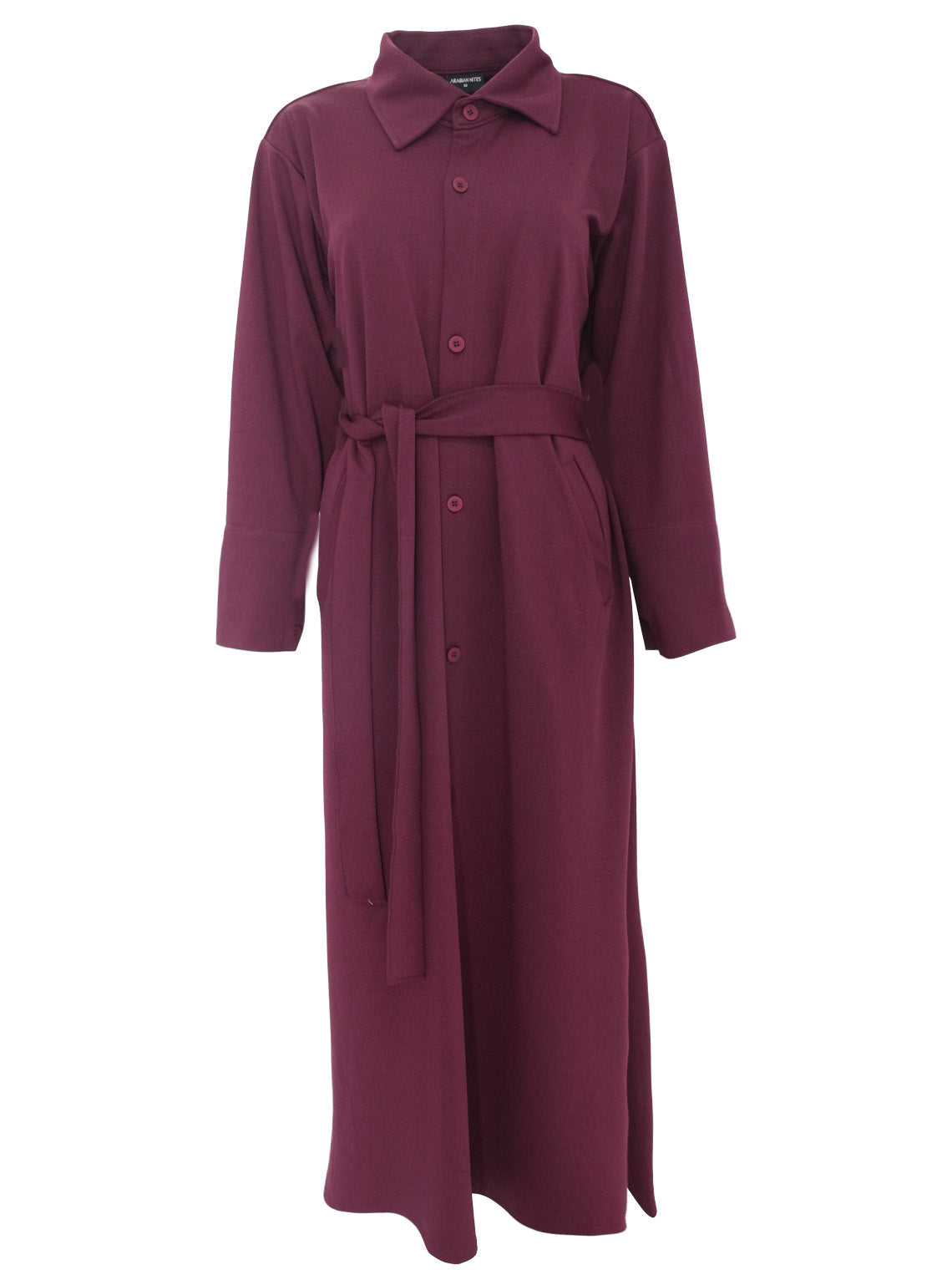 This maroon textured jacket strikes an enviable balance between laid-back ease and considered design. Cut in a flattering extended length from breathable jersey cotton, it's the kind of piece that works harder than it looks. Thoughtful details—including functional side pockets and a belt that can be styled multiple ways—elevate its everyday appeal, while ribbed accents along the collar and cuffs add subtle visual interest and refinement. Versatile enough for both relaxed and dressed-up moments, it's the effortless layer that anchors any thoughtfully curated wardrobe.